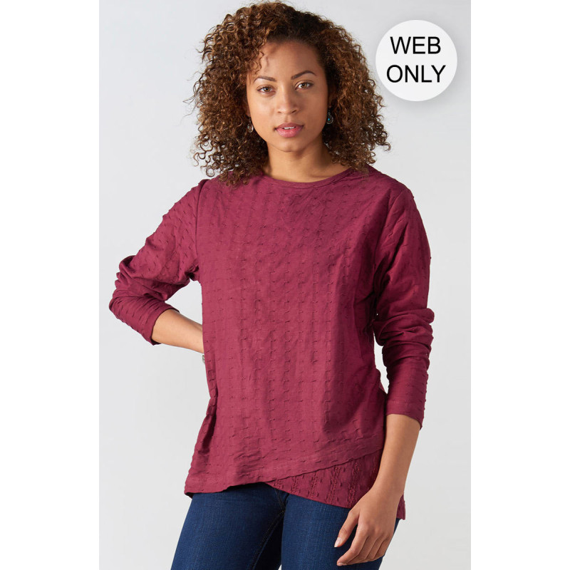 Sherna Textured Knit Long-Sleeve Tee - Wineberry